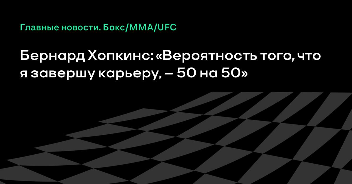 Американец Бернард Хопкинс после поражения от чемпиона мира по версии WBO, WBA и IBF в весовой категории до 79,4 кг Сергея Ковалева подчеркнул: вероятность того, что он завершит профессиональную карьеру – 50 на 50.