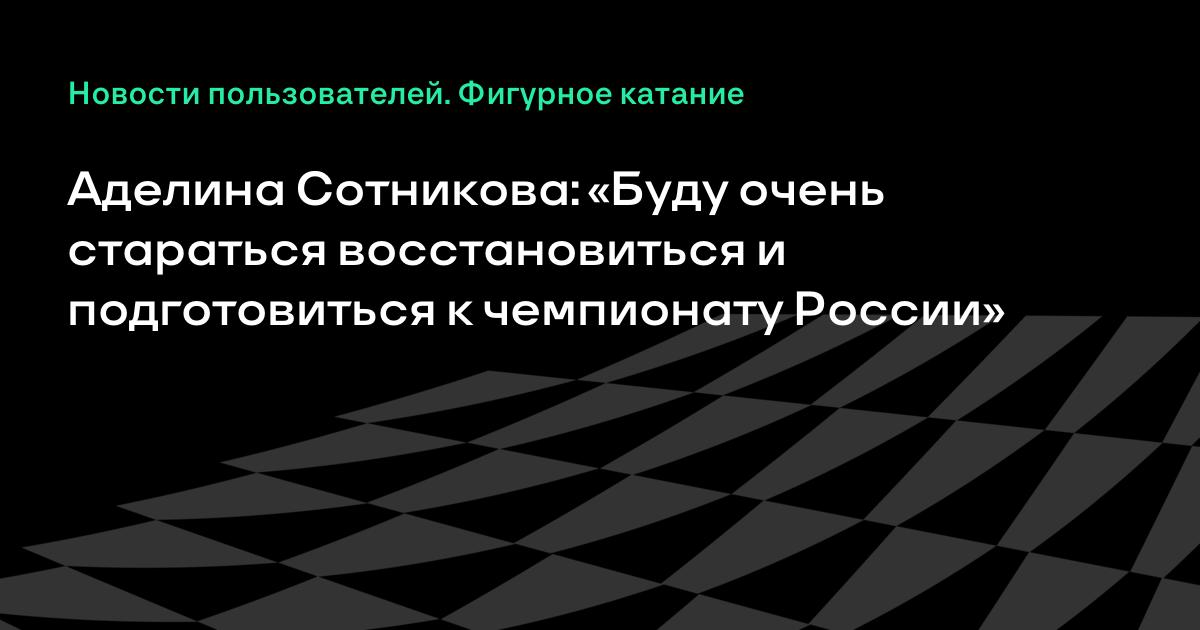 Но, видимо, пока не судьба. Я буду очень стараться восстановиться и подготовиться к чемпионату России», — сказала Сотникова