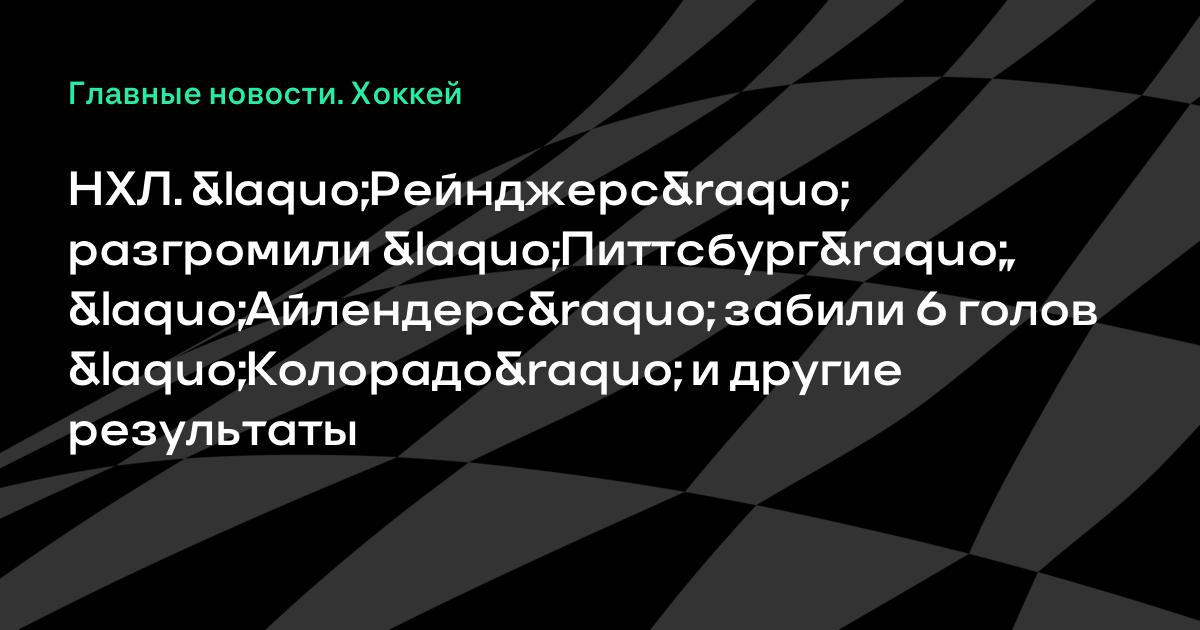 НХЛ. «Рейнджерс» разгромили «Питтсбург», «Айлендерс» забили 6 голов «Колорадо» и другие результаты