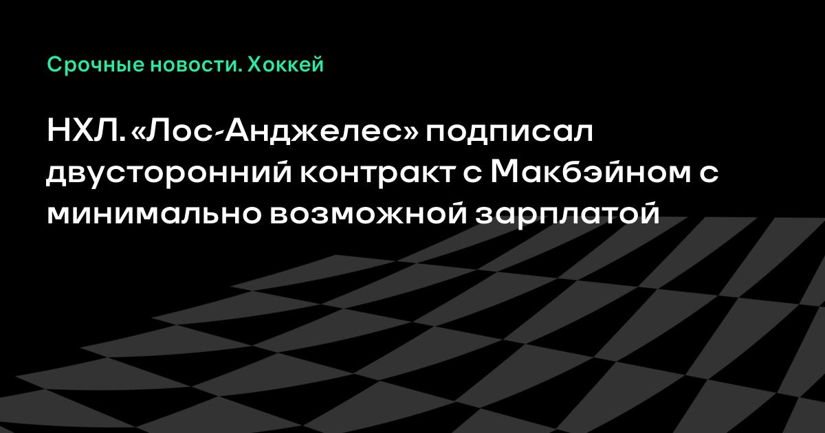 НХЛ. «Лос-Анджелес» подписал двусторонний контракт с Макбэйном с минимально возможной зарплатой