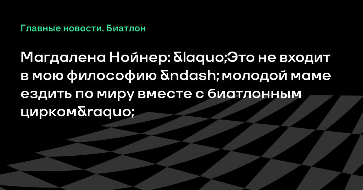 Стать комментатором? Нет, этого я себе не могу представить. Я не знаю, откуда появляются эти слухи, интересно было бы знать. Свои приоритеты я расставила по-другому. Это не входит в мою жизненную философию, будучи молодой матерью, ездить по миру вместе с биатлонным цирком. Этого ни за что не будет», – рассказала Нойнер в интервью Focus Online.