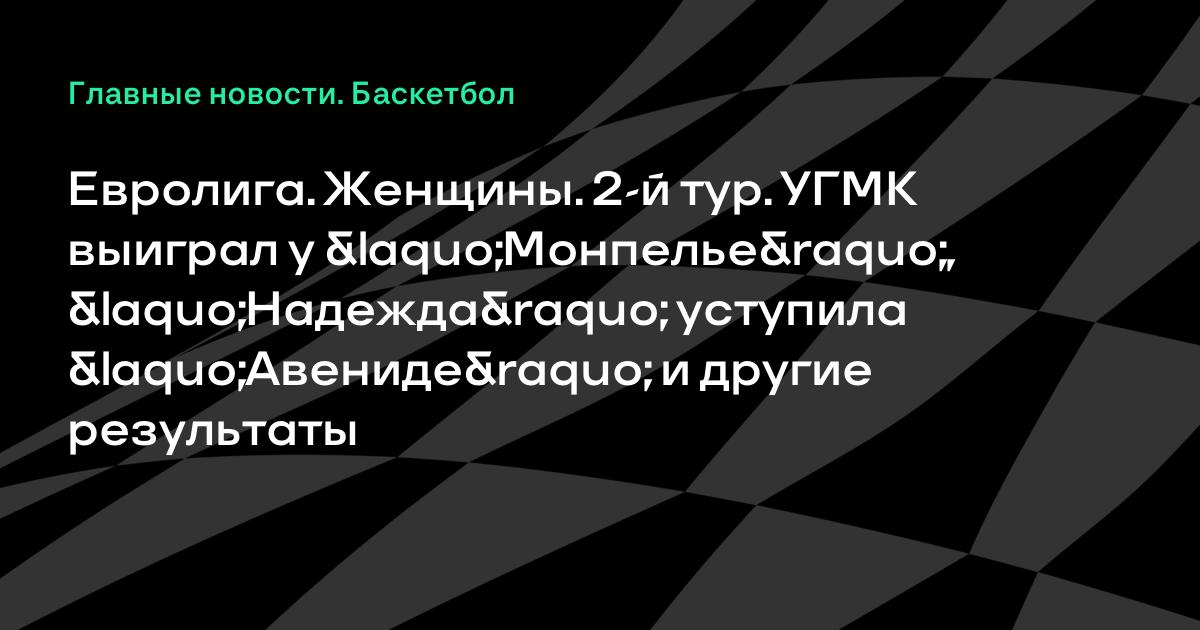 Евролига. Женщины. 2-й тур. УГМК выиграл у «Монпелье», «Надежда» уступила «Авениде» и другие результаты
