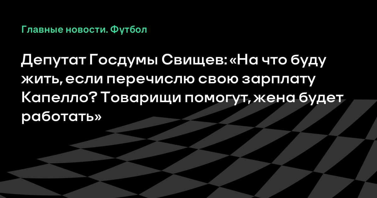 Депутат Госдумы Свищев: «На что буду жить, если перечислю свою зарплату Капелло? Товарищи помогут, жена будет работать»