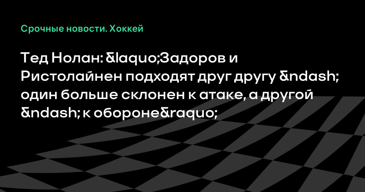 Тед Нолан: «Задоров и Ристолайнен подходят друг другу – один больше склонен к атаке, а другой – к обороне»