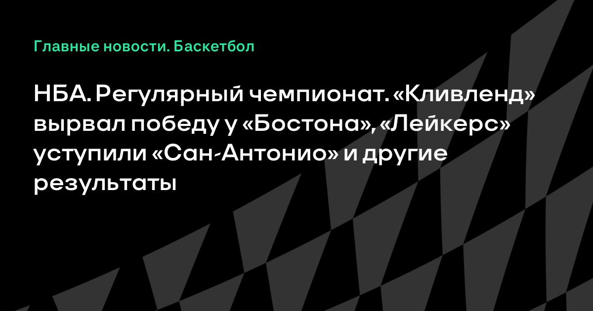 НБА. Регулярный чемпионат. «Кливленд» вырвал победу у «Бостона», «Лейкерс» уступили «Сан-Антонио» и другие результаты