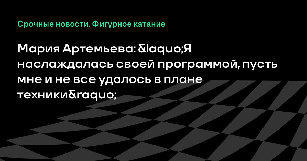 По-моему, у меня это получилось. Я действительно сегодня наслаждалась своей программой, пусть мне и не все удалось в плане техники», – приводит слова Артемьевой «Р-Спорт».