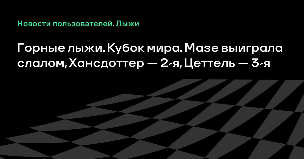 Горные лыжи. Кубок мира. Мазе выиграла слалом, Хансдоттер — 2-я, Цеттель — 3-я