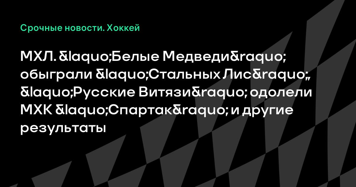 МХЛ. «Белые Медведи» обыграли «Стальных Лис», «Русские Витязи» одолели МХК «Спартак» и другие результаты