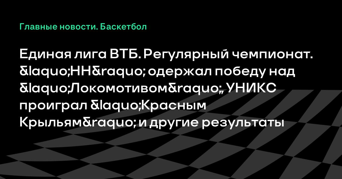 Единая лига ВТБ. Регулярный чемпионат. «НН» одержал победу над «Локомотивом», УНИКС проиграл «Красным Крыльям» и другие результаты