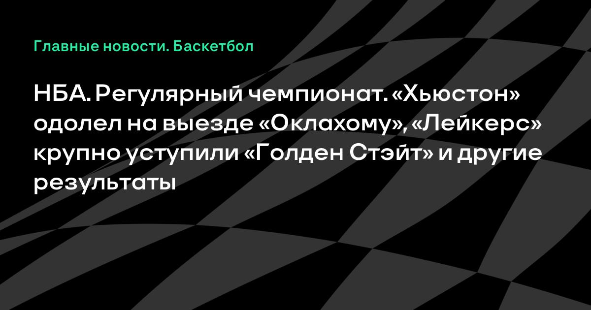 НБА. Регулярный чемпионат. «Хьюстон» одолел на выезде «Оклахому», «Лейкерс» крупно уступили «Голден Стэйт» и другие результаты