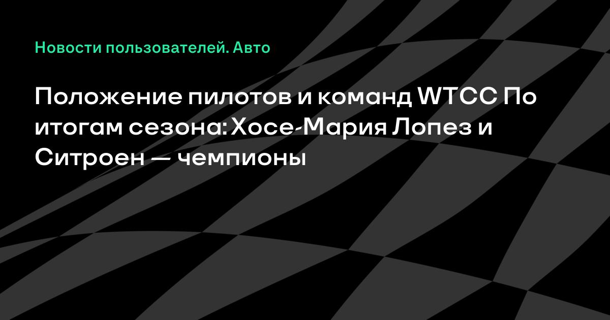 Положение пилотов и команд WTCC По итогам сезона: Хосе-Мария Лопез и Ситроен — чемпионы
