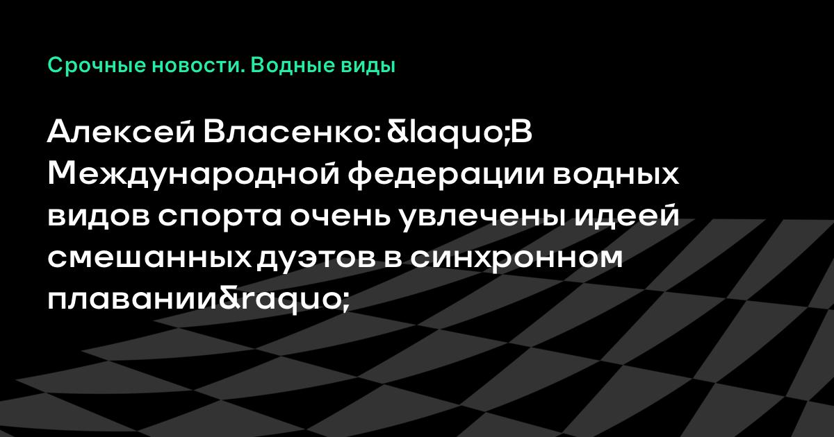 Алексей Власенко: «В Международной федерации водных видов спорта очень увлечены идеей смешанных дуэтов в синхронном плавании»