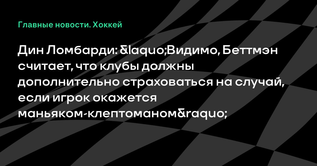 Дин Ломбарди: «Видимо, Беттмэн считает, что клубы должны дополнительно страховаться на случай, если игрок окажется маньяком-клептоманом»