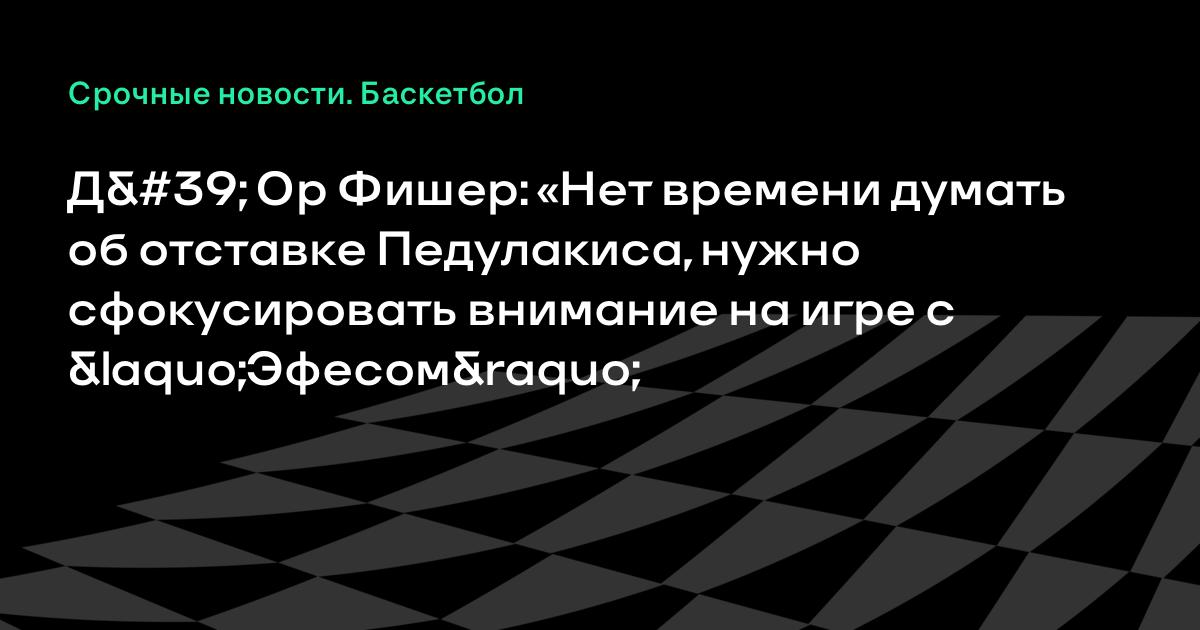Д' Ор Фишер: «Нет времени думать об отставке Педулакиса, нужно сфокусировать внимание на игре с «Эфесом»