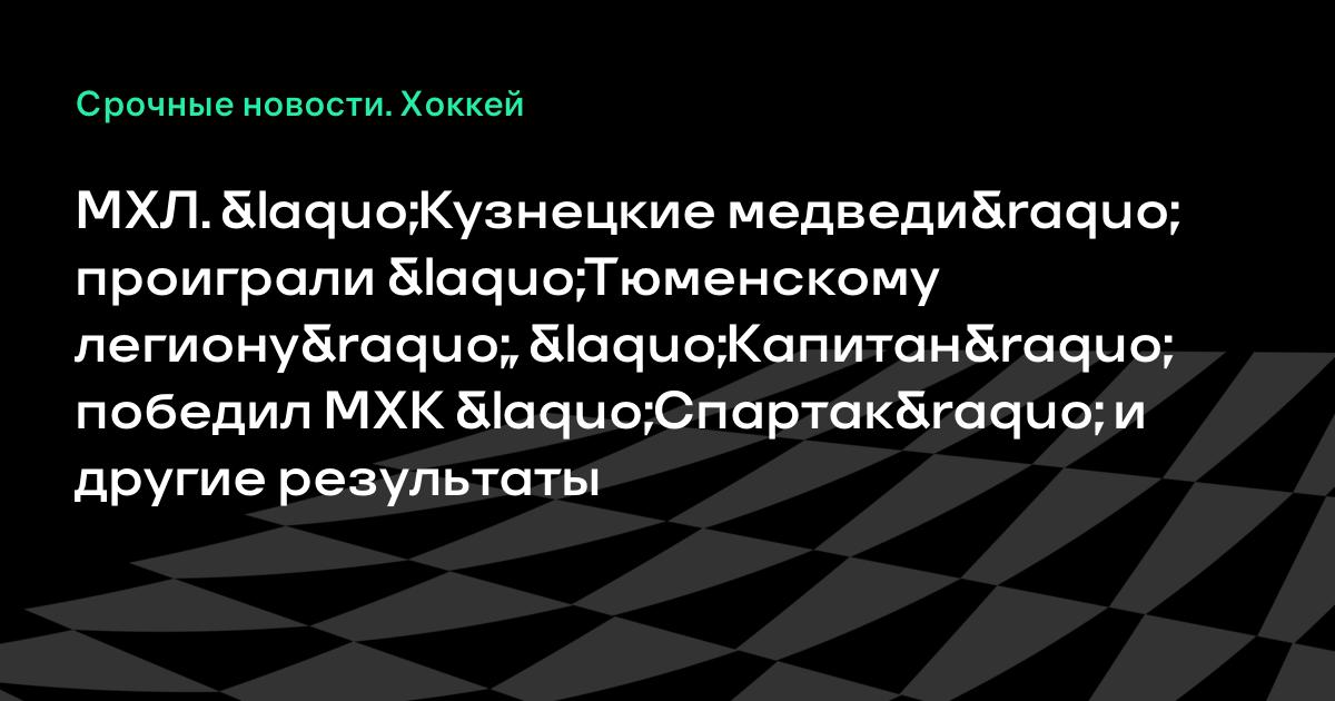 МХЛ. «Кузнецкие медведи» проиграли «Тюменскому легиону», «Капитан» победил МХК «Спартак» и другие результаты