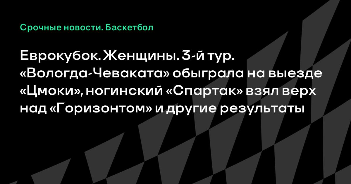 В четверг, 20 ноября, в рамках 3-го тура группового этапа женского Еврокубка «Вологда-Чеваката» обыграла на выезде белорусский «Цмоки-Минск». Ногинский «Спартак» победил в выездной встрече с «Горизонтом» (73:67).