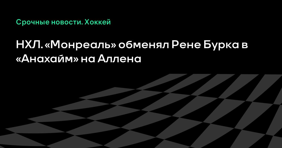 НХЛ. «Монреаль» обменял Рене Бурка в «Анахайм» на Аллена