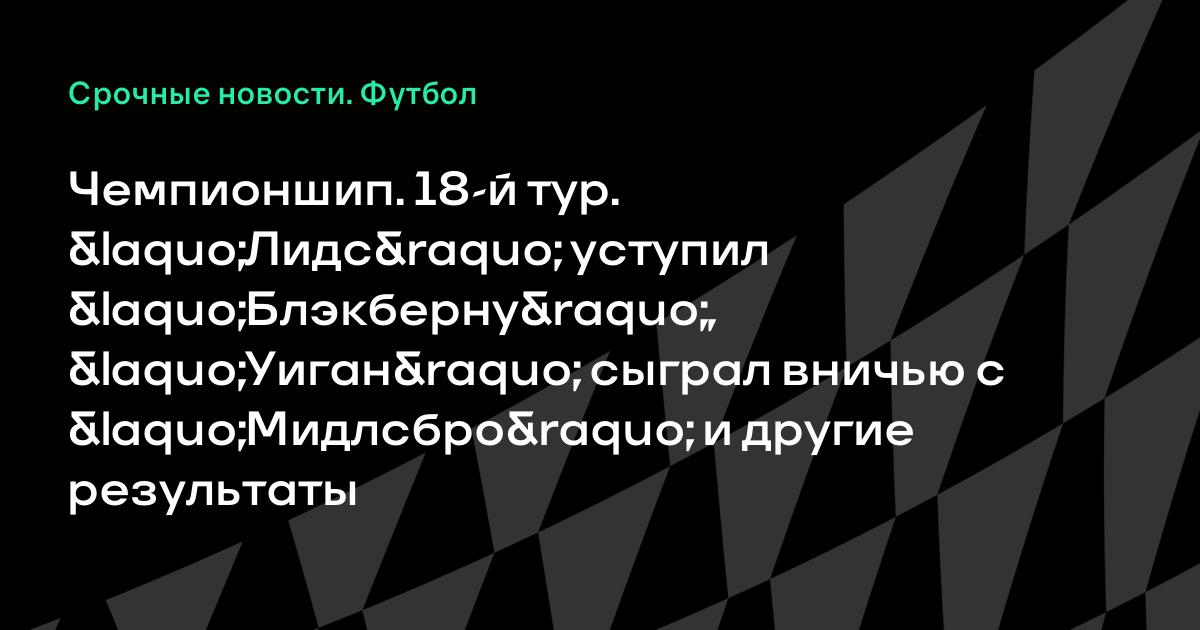 Чемпионшип. 18-й тур. «Лидс» уступил «Блэкберну», «Уиган» сыграл вничью с «Мидлсбро» и другие результаты