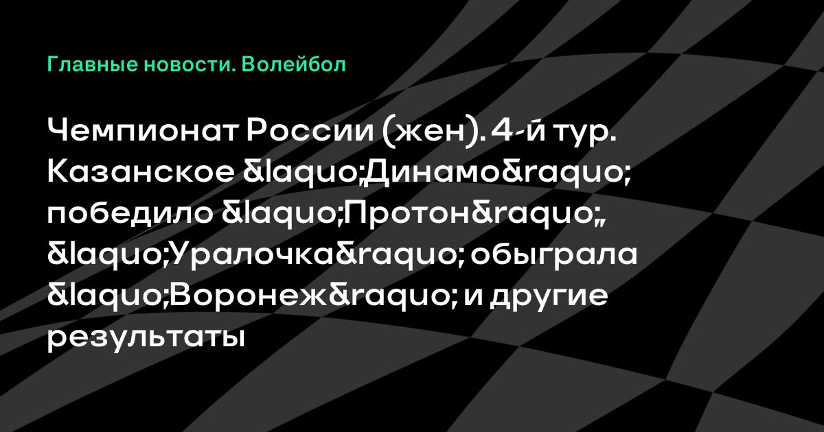 Чемпионат России (жен). 4-й тур. Казанское «Динамо» победило «Протон», «Уралочка» обыграла «Воронеж» и другие результаты