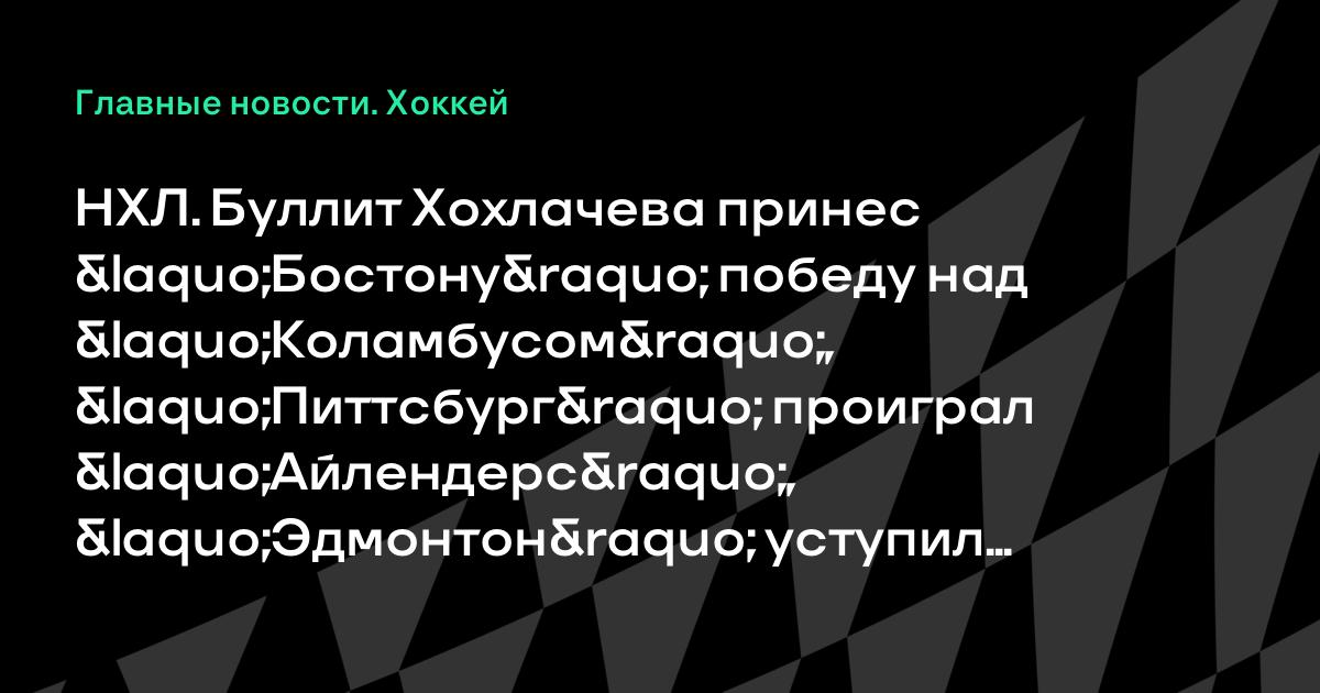 НХЛ. Буллит Хохлачева принес «Бостону» победу над «Коламбусом», «Питтсбург» проиграл «Айлендерс», «Эдмонтон» уступил «Нью-Джерси»