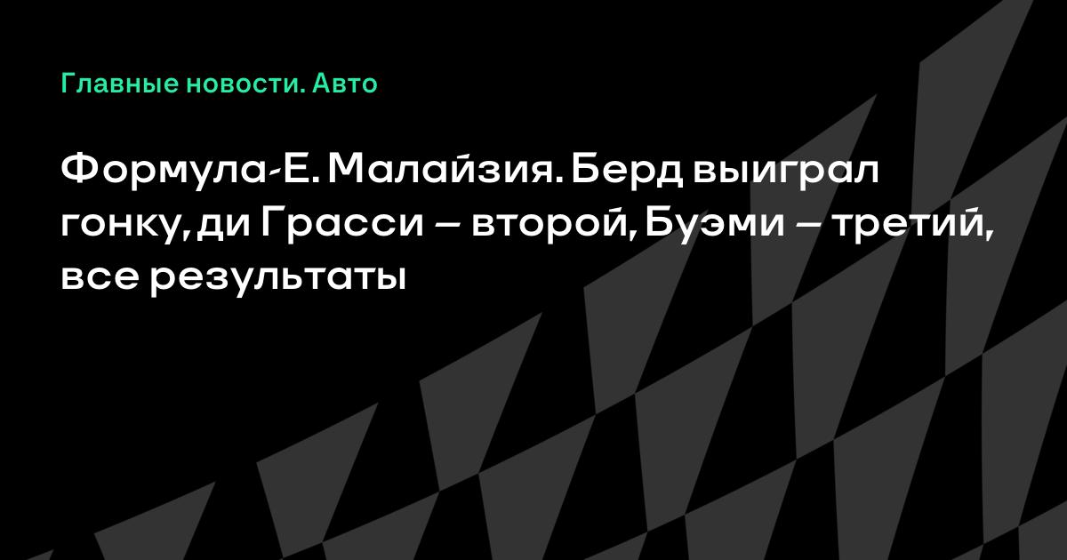 Формула-Е. Малайзия. Берд выиграл гонку, ди Грасси – второй, Буэми – третий, все результаты