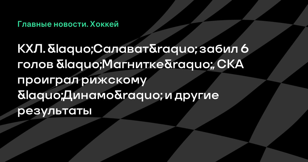 КХЛ. «Салават» забил 6 голов «Магнитке», СКА проиграл рижскому «Динамо» и другие результаты
