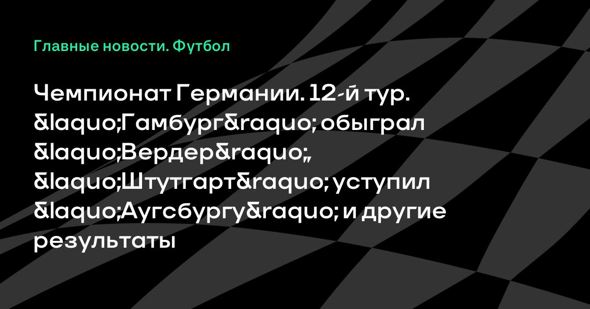 Чемпионат Германии. 12-й тур. «Гамбург» обыграл «Вердер», «Штутгарт» уступил «Аугсбургу» и другие результаты