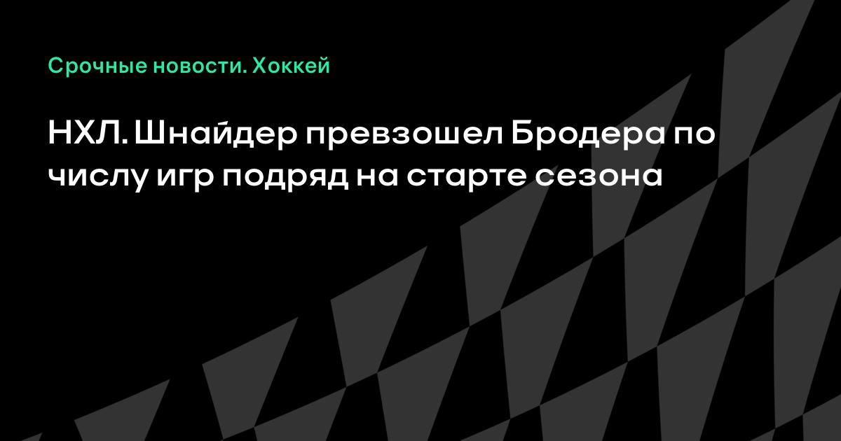 НХЛ. Шнайдер превзошел Бродера по числу игр подряд на старте сезона