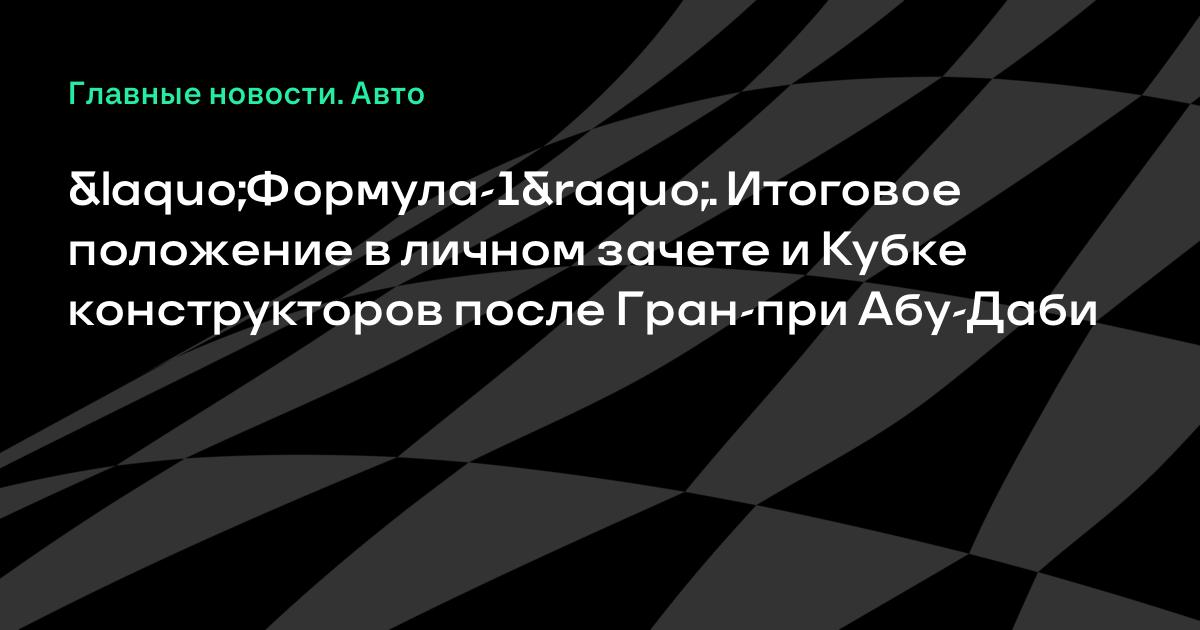 «Формула-1». Итоговое положение в личном зачете и Кубке конструкторов после Гран-при Абу-Даби