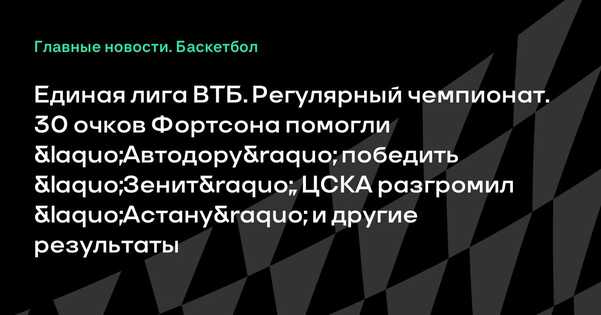 Единая лига ВТБ. Регулярный чемпионат. 30 очков Фортсона помогли «Автодору» победить «Зенит», ЦСКА разгромил «Астану» и другие результаты