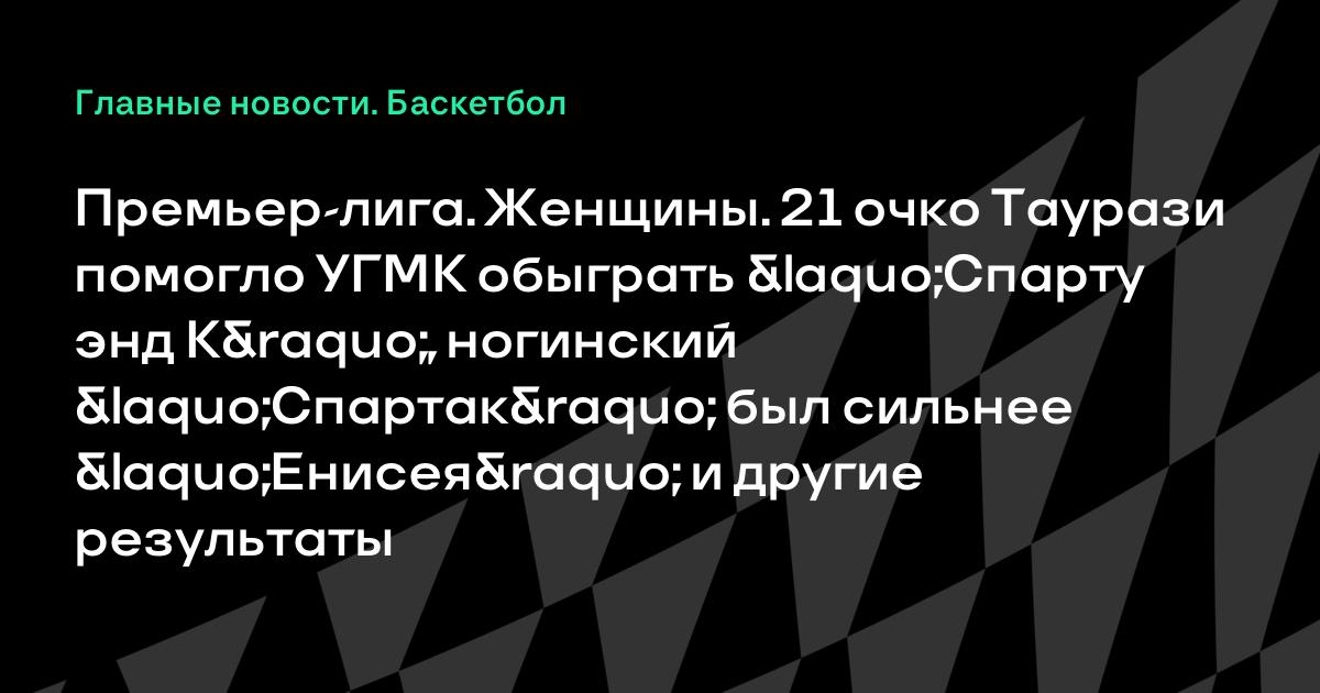 Премьер-лига. Женщины. 21 очко Таурази помогло УГМК обыграть «Спарту энд К», ногинский «Спартак» был сильнее «Енисея» и другие результаты