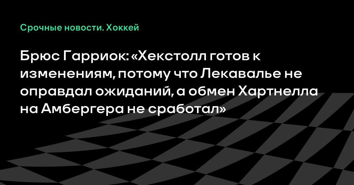 Брюс Гарриок: «Хекстолл готов к изменениям, потому что Лекавалье не оправдал ожиданий, а обмен Хартнелла на Амбергера не сработал»