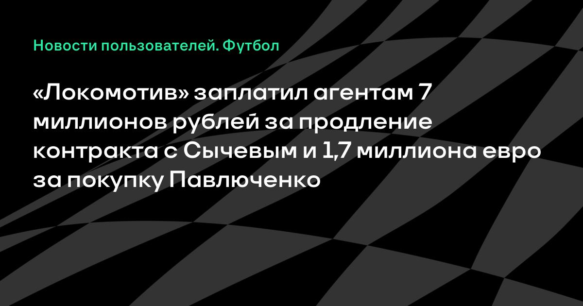 «Локомотив» заплатил агентам 7 миллионов рублей за продление контракта с Сычевым и 1,7 миллиона евро за покупку Павлюченко