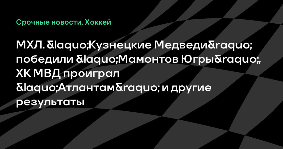МХЛ. «Кузнецкие Медведи» победили «Мамонтов Югры», ХК МВД проиграл «Атлантам» и другие результаты