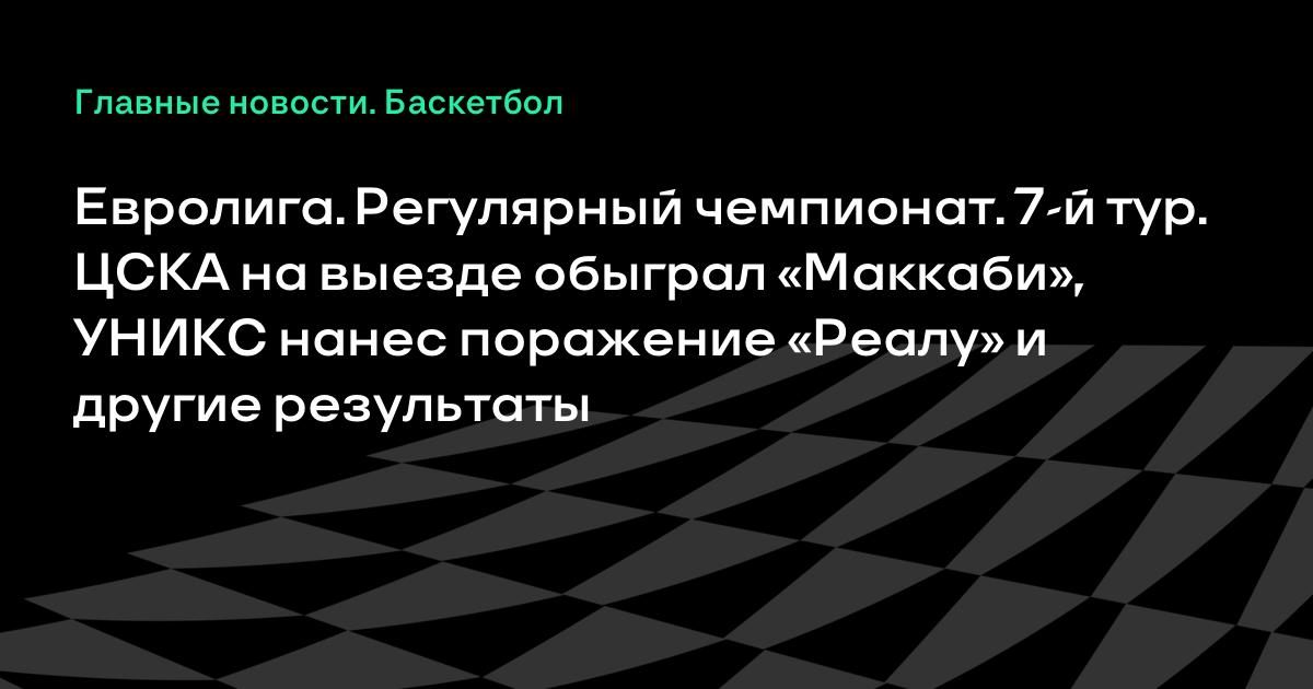 Евролига. Регулярный чемпионат. 7-й тур. ЦСКА на выезде обыграл «Маккаби», УНИКС нанес поражение «Реалу» и другие результаты