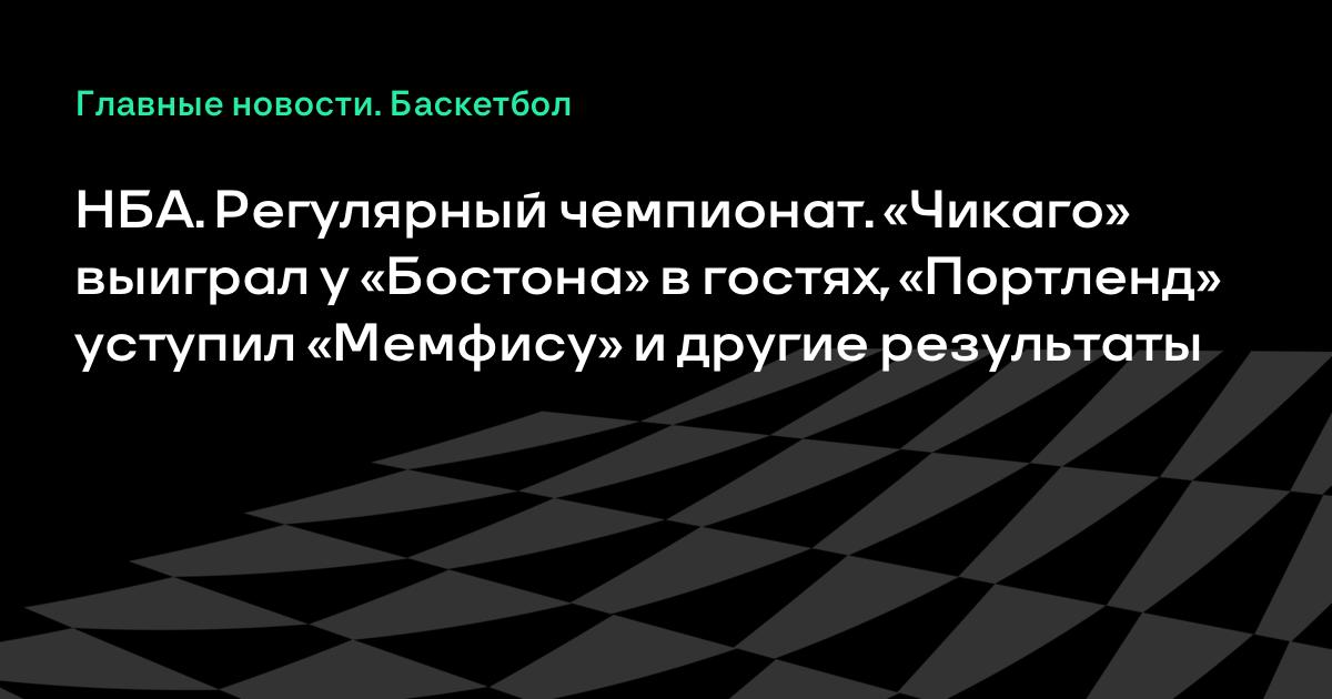НБА. Регулярный чемпионат. «Чикаго» выиграл у «Бостона» в гостях, «Портленд» уступил «Мемфису» и другие результаты В пятницу, 28 ноября, в рамках регулярного чемпионата НБА прошли двенадцать матчей. «Бостон» на своей площадке проиграл «Чикаго» (102:109). «Портленд» не сумел одержать десятую победу подряд, уступив лидеру Западной конференции «Мемфису» (99:112).