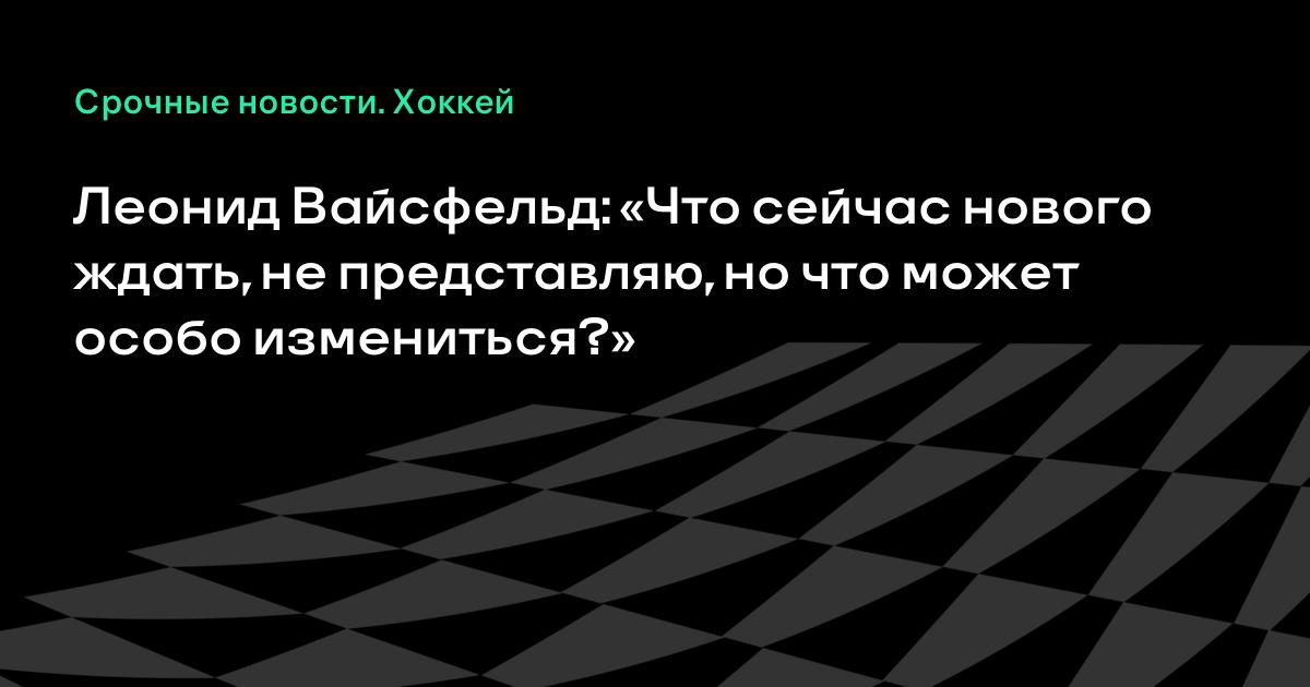 Что сейчас нового ждать, не представляю, но, с другой стороны, что может особо измениться? Ждем встречу с Дмитрием Чернышенко в Сочи», — сказал Вайсфельд.
