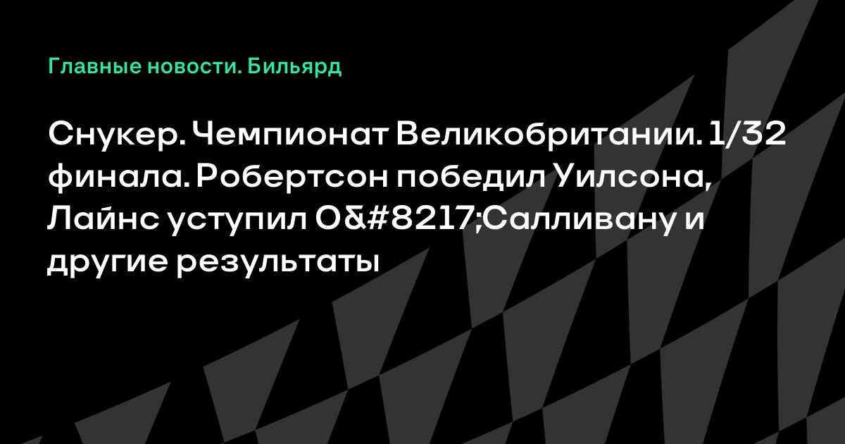 Снукер. Чемпионат Великобритании. 1/32 финала. Робертсон победил Уилсона, Лайнс уступил О’Салливану и другие результаты