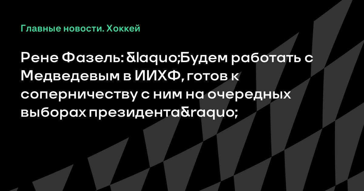 Рене Фазель: «Будем работать с Медведевым в ИИХФ, готов к соперничеству с ним на очередных выборах президента»