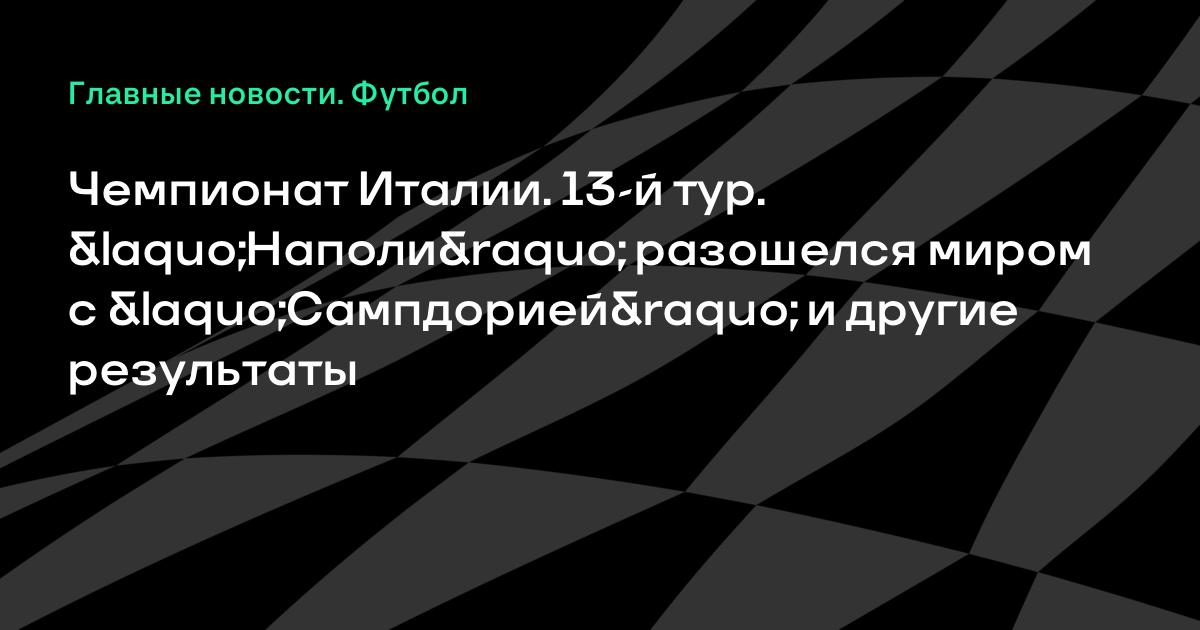 Чемпионат Италии. 13-й тур. «Наполи» разошелся миром с «Сампдорией» и другие результаты