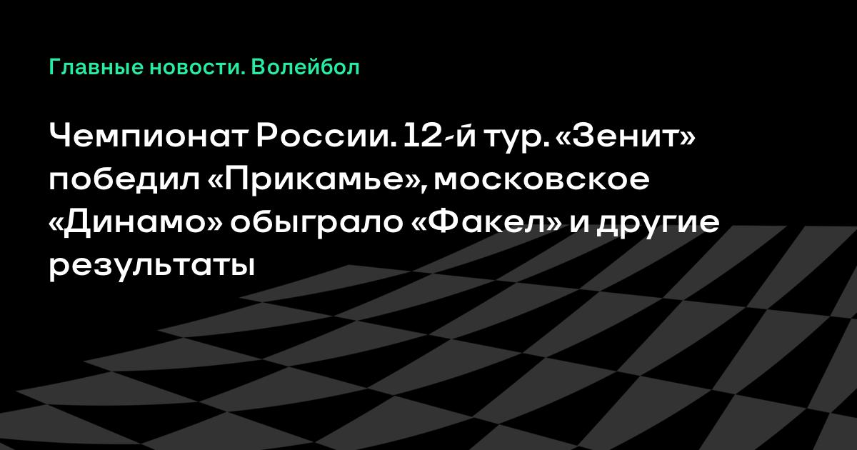 Сегодня состоялись матчи 12-го тура мужского чемпионата России по волейболу. «Зенит» победил «Прикамье» (3-0), московское «Динамо» обыграло «Факел» (3-1).