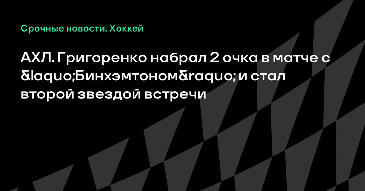 АХЛ. Григоренко набрал 2 очка в матче с «Бинхэмтоном» и стал второй звездой встречи