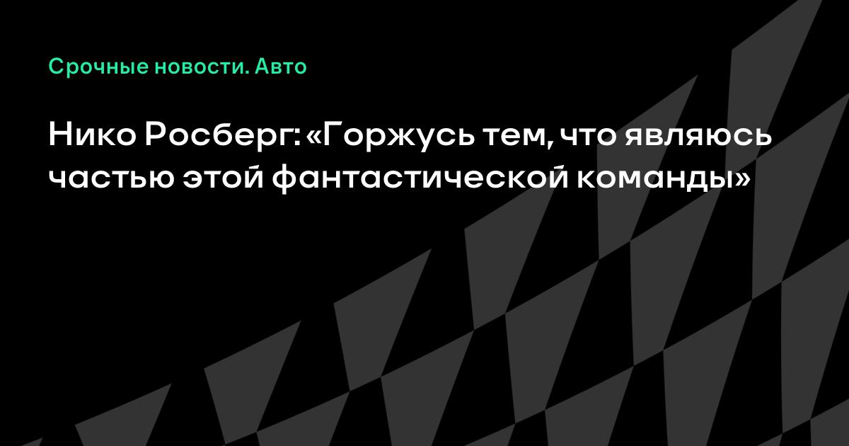 Нико Росберг: «Горжусь тем, что являюсь частью этой фантастической команды»