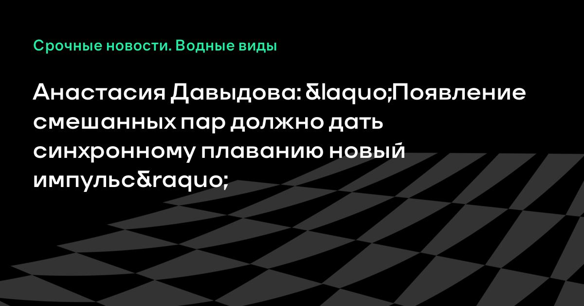 Бывшая российская синхронистка Анастасия Давыдова прокомментировала решение Международной федерации водных видов спорта (FINA) о включении в программу чемпионата мира смешанных дуэтов.