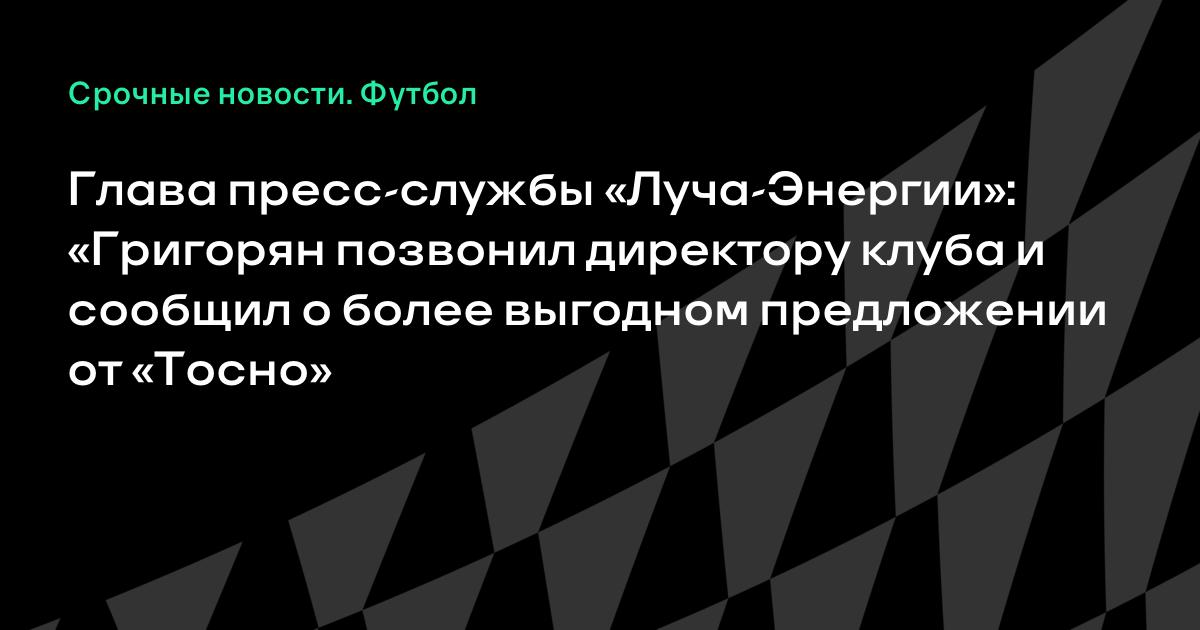«Григорян позвонил директору клуба и сообщил о более выгодном предложении от «Тосно». Так как у «Луча-Энергии» финансовые трудности и перед клубом не стоит высоких задач, предложение от «Тосно» было принято.