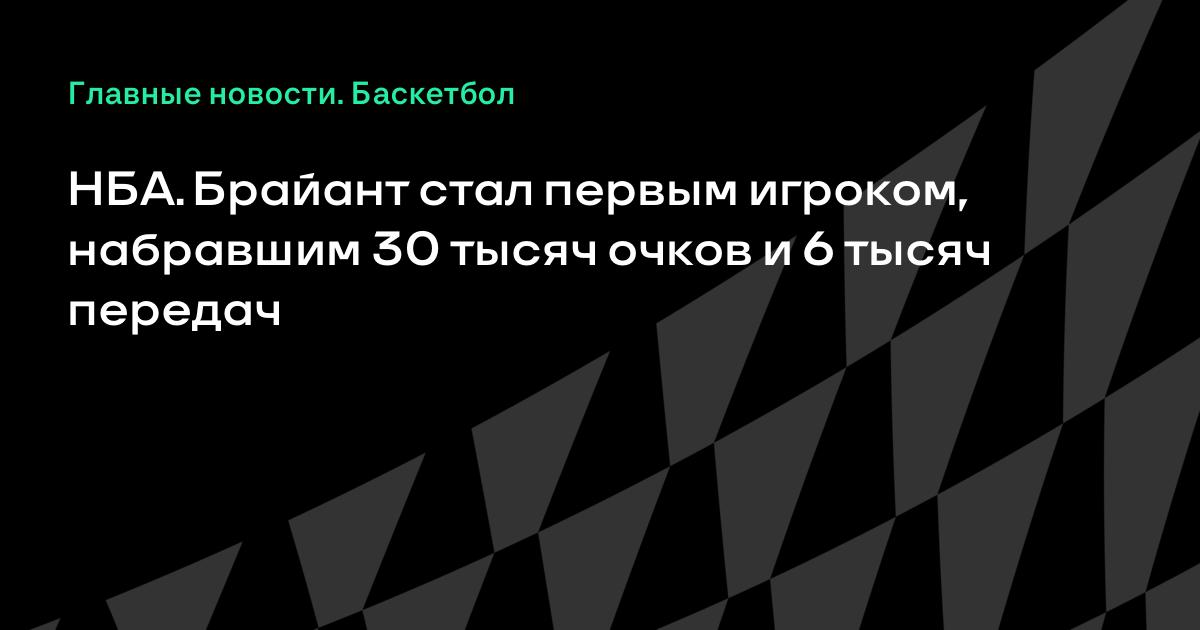 Лидер «Лейкерс» Кобе Брайант в воскресенье стал первым игроком в истории лиги, сумевшим добраться до показателей в 30 тысяч очков и 6 тысяч результативных передач, сообщает ESPN Los Angeles.