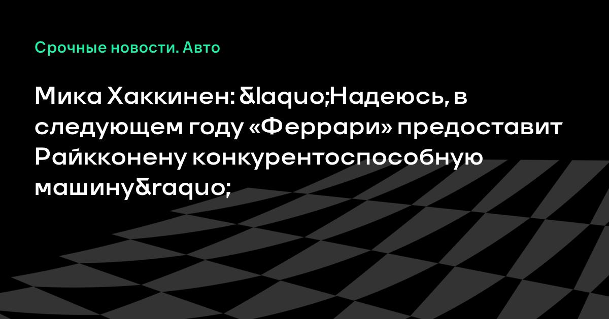 Можно только надеяться, что в следующем году «Феррари» предоставит Кими конкурентоспособную машину. Если болид останется на нынешнем уровне, то это отразится на мотивации обоих гонщиков», – цитирует Хаккинена Motorsport-Total.
