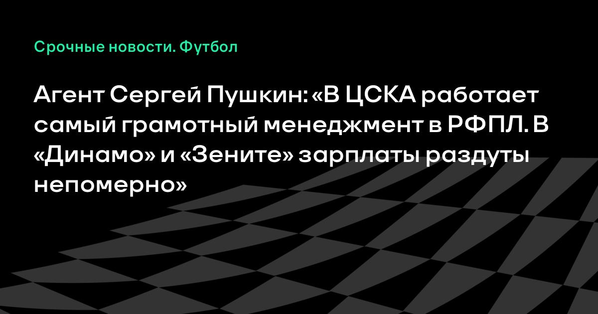 Агент Сергей Пушкин: «В ЦСКА работает самый грамотный менеджмент в РФПЛ. В «Динамо» и «Зените» зарплаты раздуты непомерно»