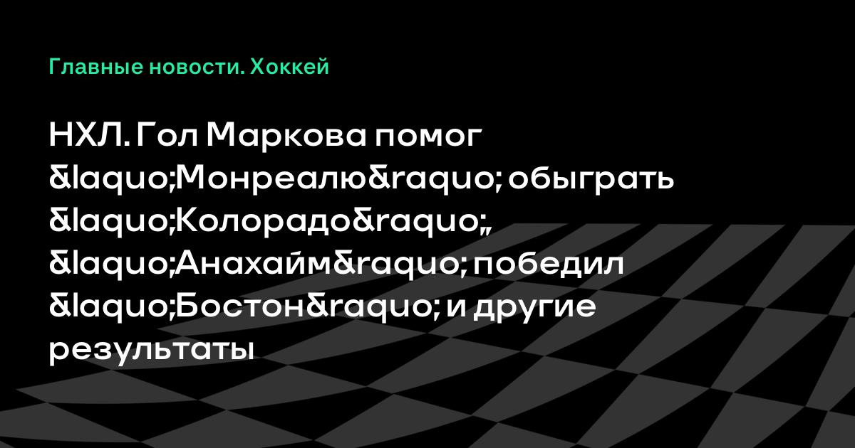 НХЛ. Гол Маркова помог «Монреалю» обыграть «Колорадо», «Анахайм» победил «Бостон» и другие результаты