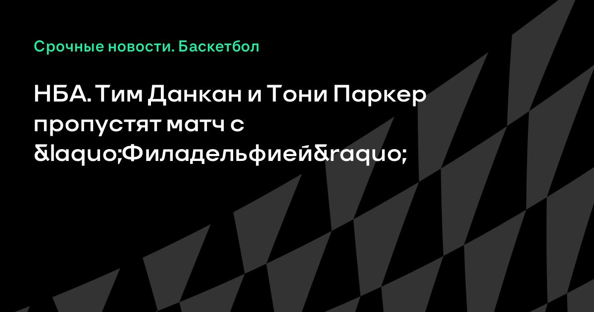 Как сообщает корреспондент The San Antonio Express-News, лидеры «Сперс» Тим Данкан и Тони Паркер не примут участие в сегодняшнем гостевом матче с «Филадельфией».